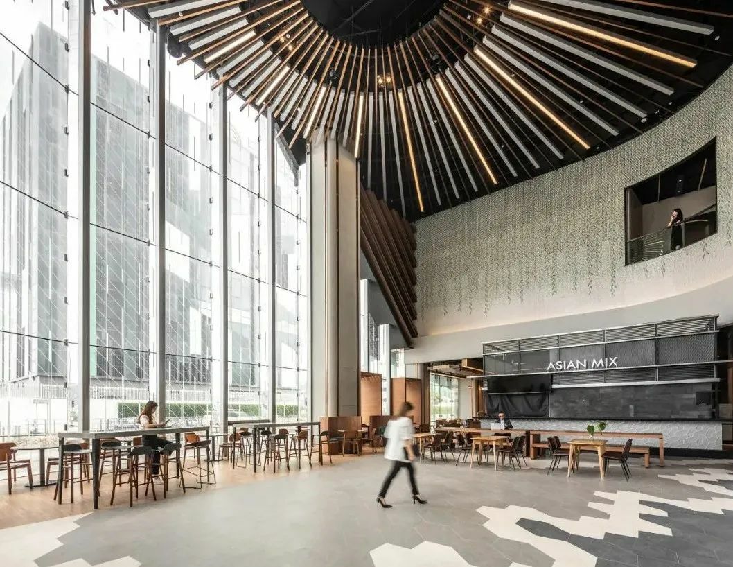 美食廣場牆身採用泰國人手製陶瓷磚DIAMOND拼出垂柳圖案。