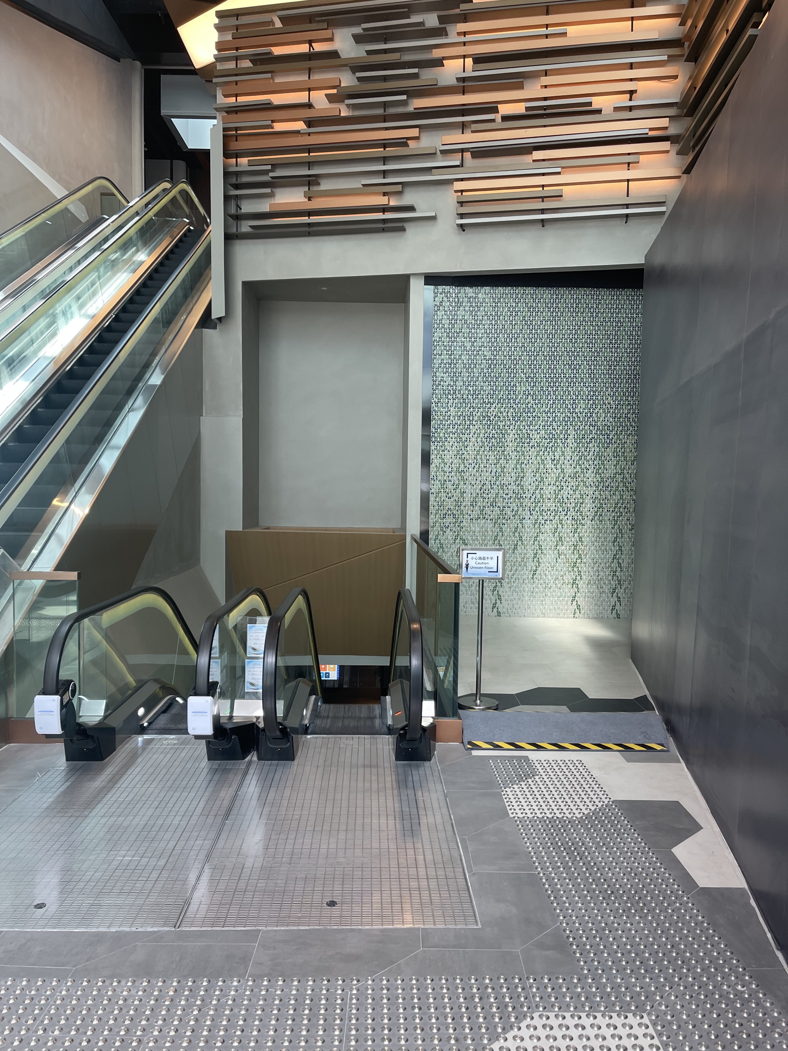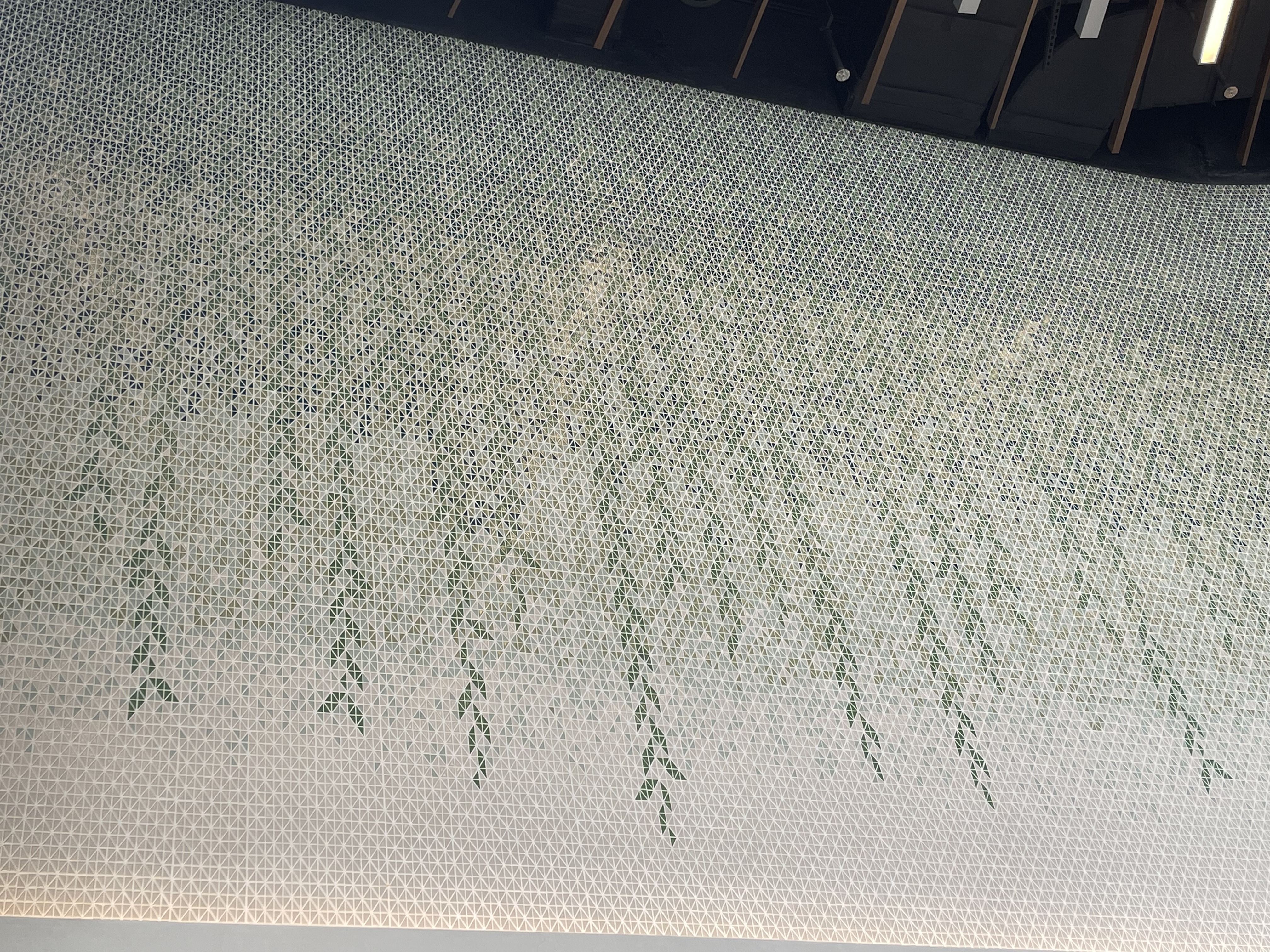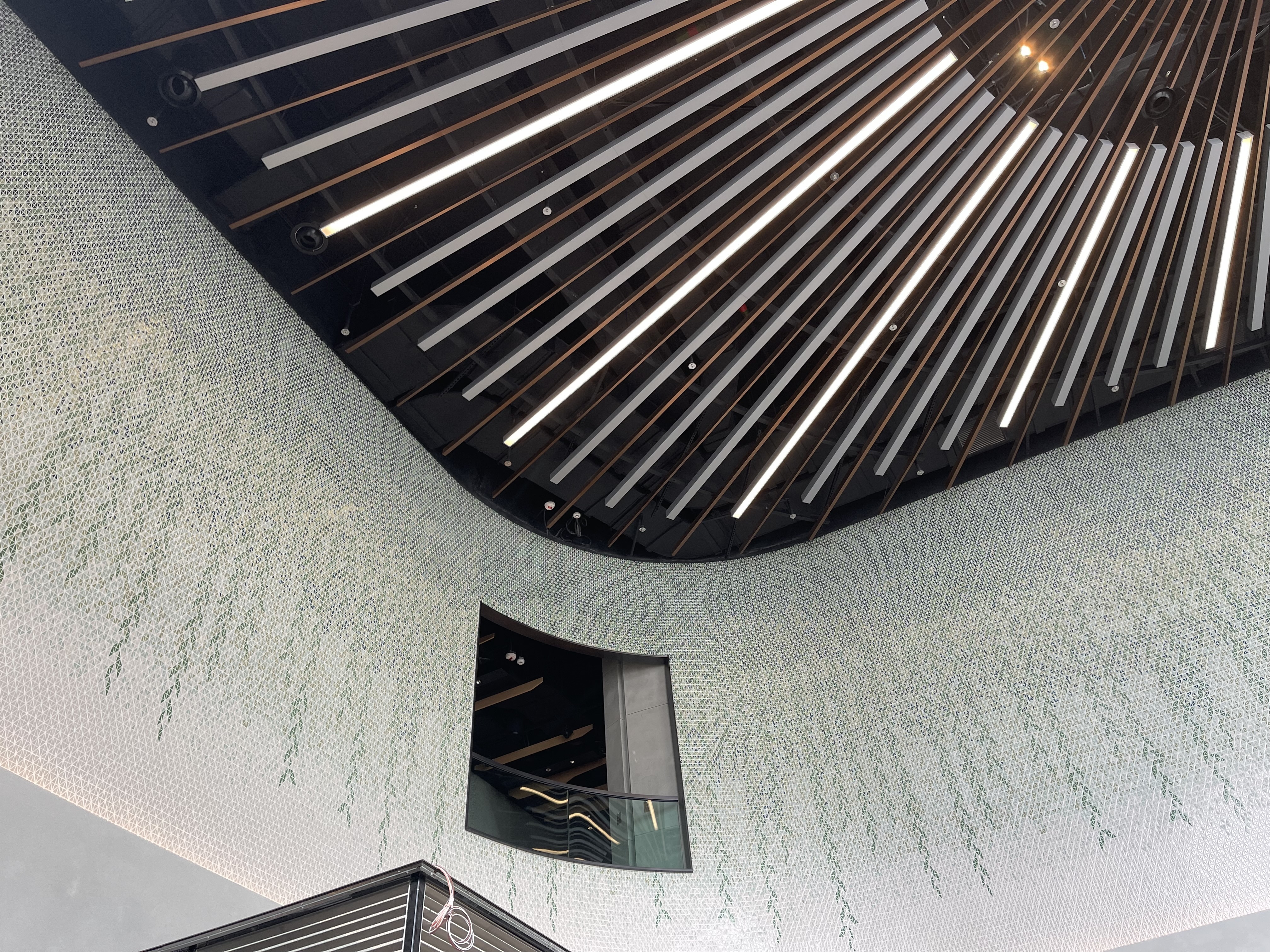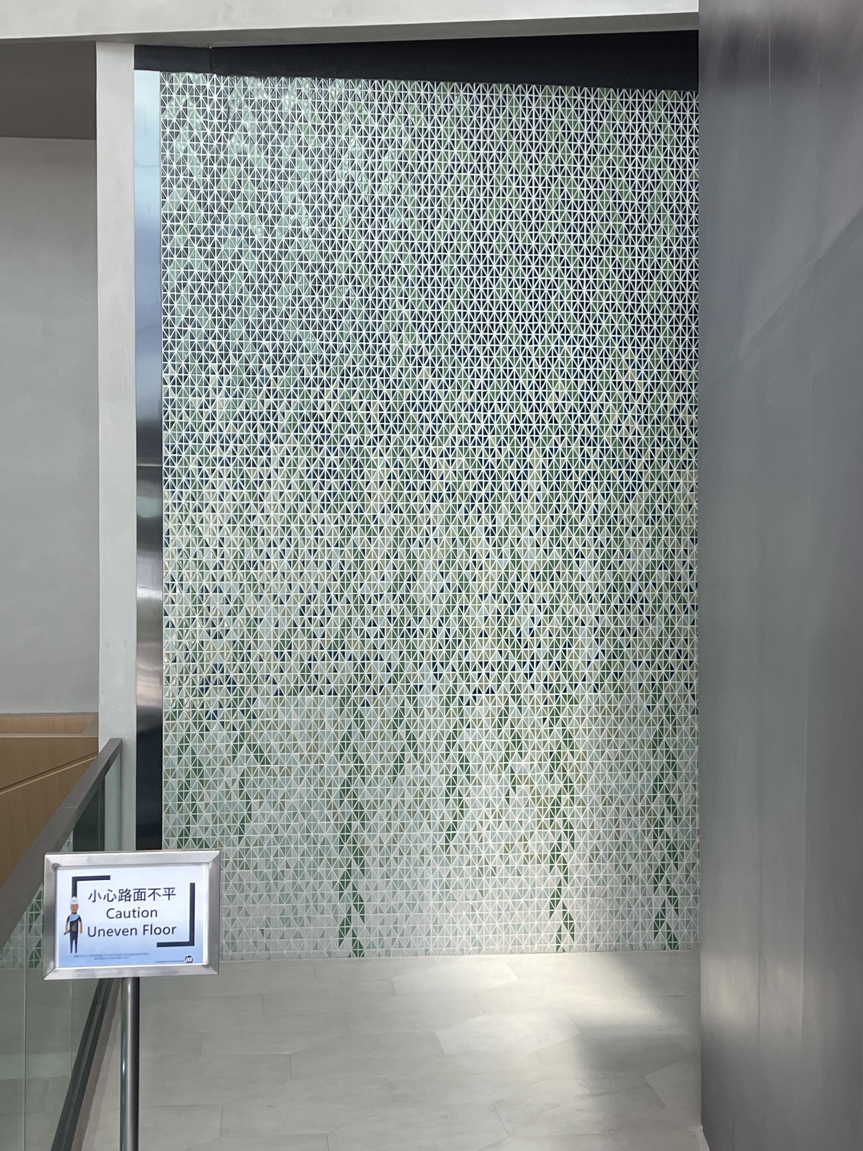美食廣場牆身採用泰國人手製陶瓷磚DIAMOND拼出垂柳圖案。