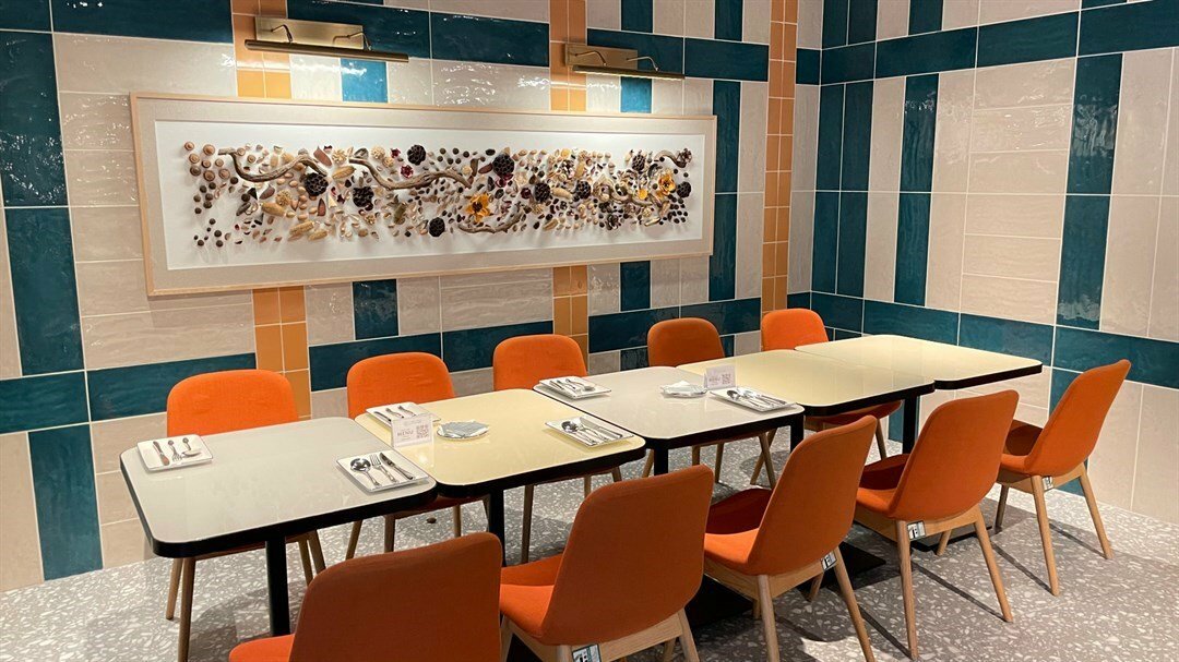 酒店內的國際主題餐廳採用泰國人手製陶瓷磚 4by4。