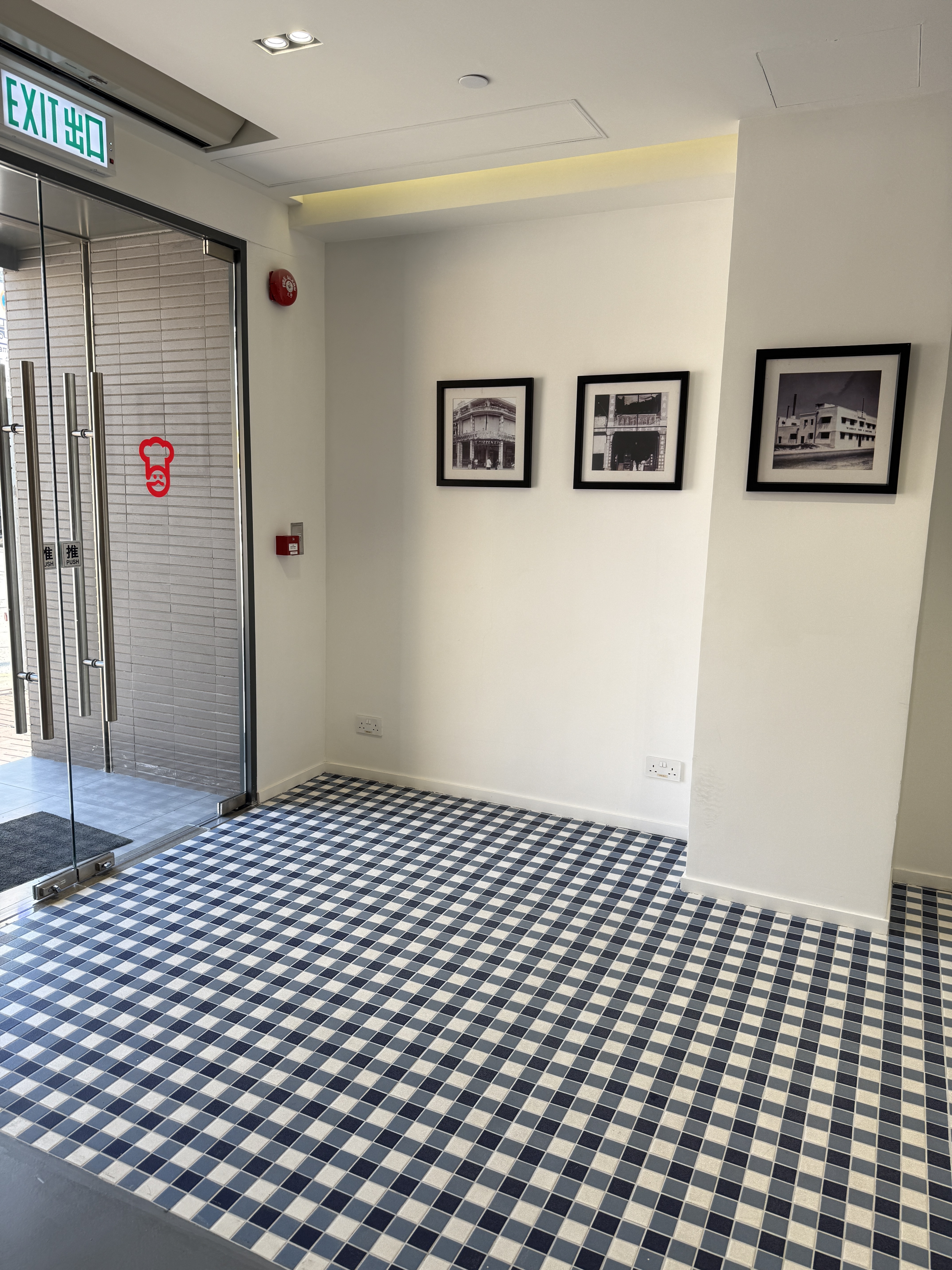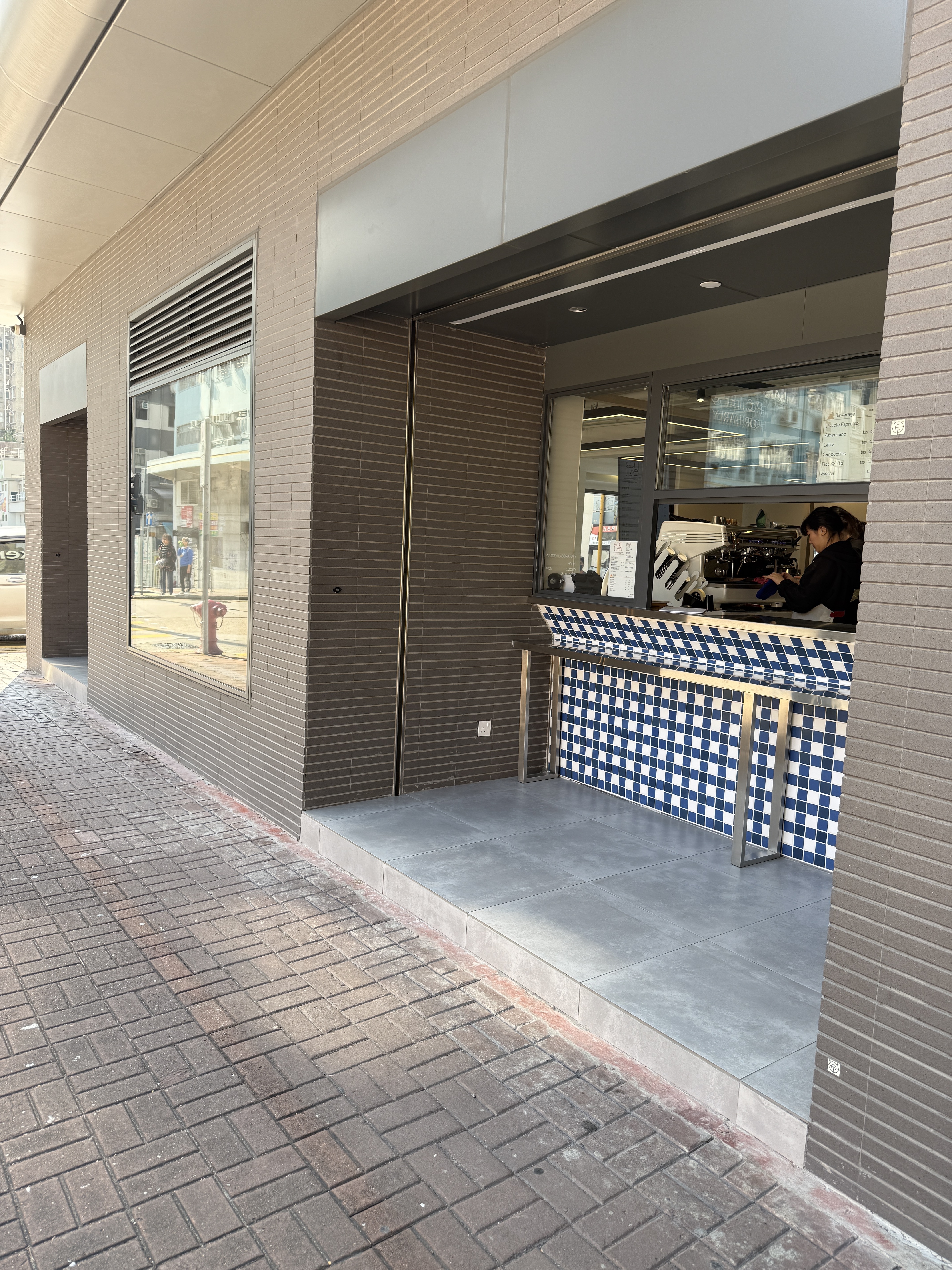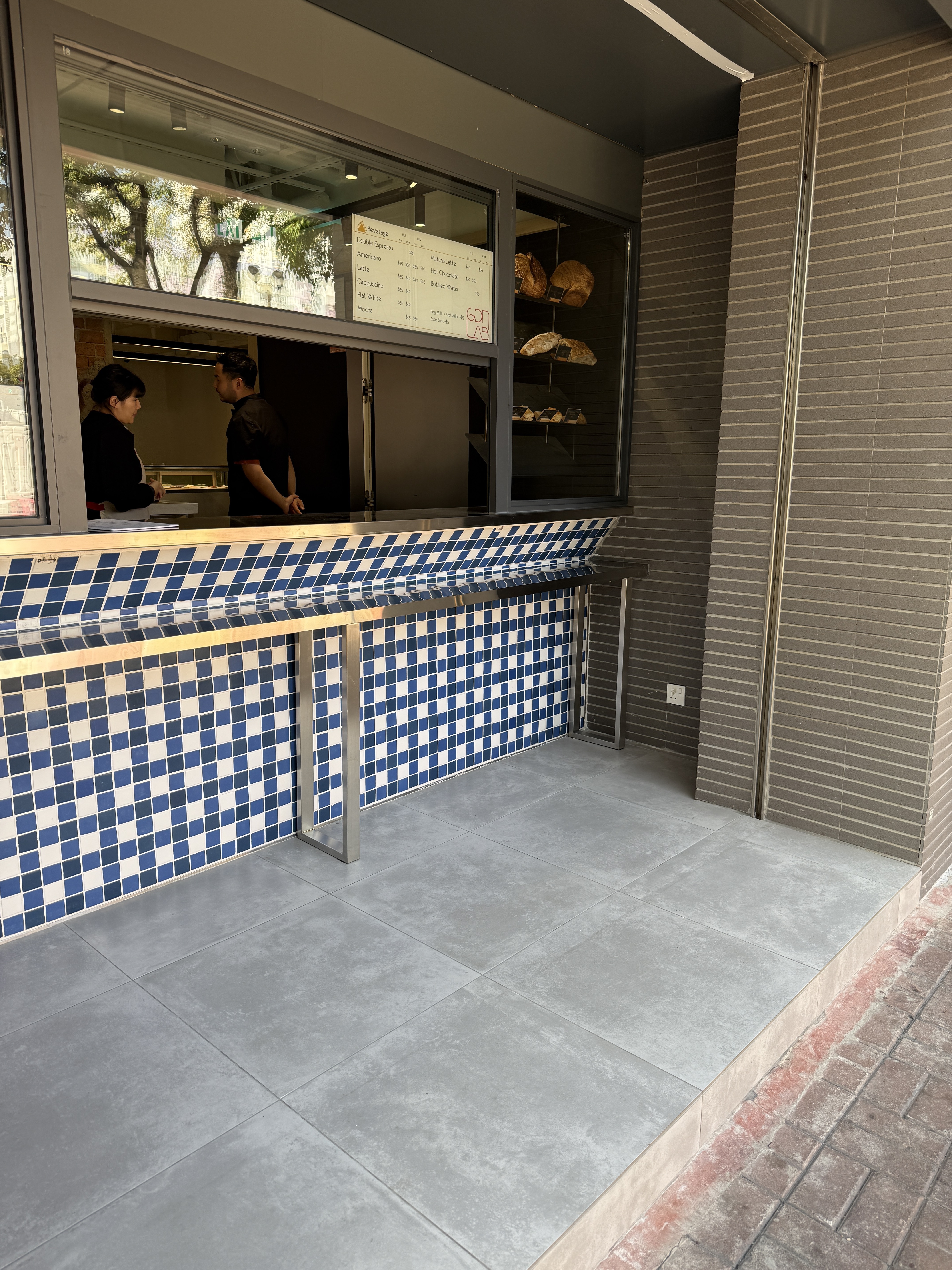 深水埗嘉頓烘焙中心內開闢了品牌展覽廳及特色烘焙店,外帶櫃檯及地面採用泰國人手製陶瓷磚 2by2 拼砌出品牌經典格紋圖案。